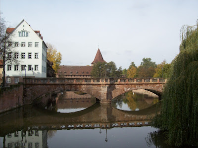 Last week was gorgeous, but freezing. Literally. And I'm so nerd-tastic that I compared weather forecasts for Nuremberg and Portland. The daily highs were about the same, but Nuremberg was averaging 15 degrees cooler in the lows category. Also, we had sun and Portland had...well, rain. No surprise there. I decided to take advantage of the blue sky and I went for a walk from our apartment to the center of the old city to take pictures specifically for this blog. Click here to see a map of the old city. This is the portion of the city that is surrounded by a medieval wall. Josh and I live outside of this wall, but it only takes a 10 minute walk full of visual delights to reach it.
